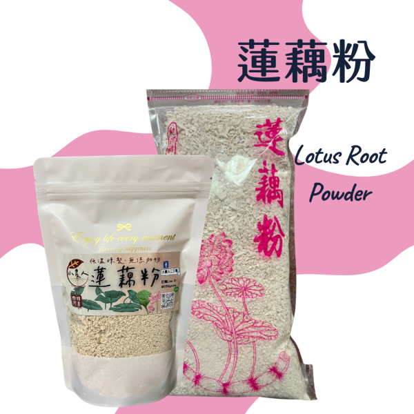 否分真假辨別 : 真藕粉成碎片狀,呈現褐粉紅色,放入口中會自然化開,假藕粉則為白色,口感較黏糊。 蓮藕粉經由研磨冰煉水洗萃取,傳統手工刮片,天然日曬製成。 蓮藕粉可代替太白粉作為菜餚勾芡材料之外,還可作為蓮藕茶飲用。 勾芡: 將蓮藕粉調些冷開水,像勾芡般的慢慢倒入湯品中,邊倒邊攪拌,再煮滾後即可熄火。 蓮藕茶: 將水煮至沸騰,關火,均勻撒下蓮藕粉並加以攪拌,撒完後開火滾約30秒即可關火,可加入適量黑糖或蜂蜜。 容量 300公克, 600公克